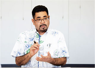 同社の自治体ソリューション本部の比嘉氏、喜納氏、喜友名氏、に詳しい採用の背景や選定理由、導入後の効果などについて伺うとともに、実際の導入先であるうるま市水道部の石川氏に新たな端末を使用し始めてみての感想を聞きました。