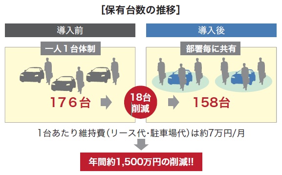 「当社では営業担当者一人に車一台を基本にしてきましたが、全ての車両が毎日稼働しているわけでもなく、多くの無駄が生じていました。