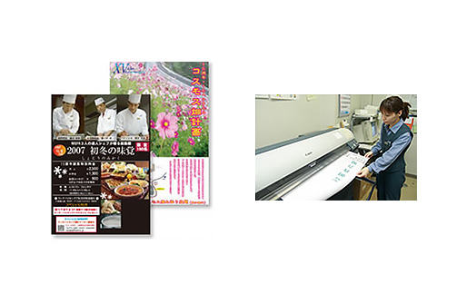 「新聞やDM、チラシは以前から積極的に取り組んできた集客方法ですが、大判プリンターの導入によりポスターも作るようになりました。導入前に外注で作ったこともありましたが、納期やコスト面などデメリットが大きく、A3サイズのポスターを掲示することが殆どでした。現在は新聞やDMの印刷は外注、ポスター、看板、垂れ幕などの店内装飾は内製というふうに分けることにより、コストと作業バランスが良くなりました。また、店舗に大きなポスターを掲示出来るようになり、お客さまにより鮮明にイベントの内容を伝えることができるようになりました。イベントには、着物を着て京都観光をするツアーがありますが、大判プリンター導入後は参加人数が増えています」(木戸氏)