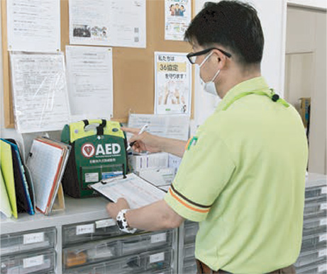 「どんな人でも突然に心停止が起きる可能性はあります。救急車が来るまでにどんな処置ができるかで救命率は変わってきますし、地域の方々や従業員の身に何かが起こった時に適切な処置を行うために、AEDが設置されていること、それをきちんと使える状態にしておくことが重要です。