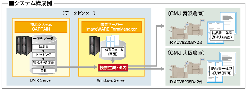 出力ソフトは既存のキヤノン製帳票システムimageWARE FormManager(iWFM)である。伝票1枚に対して1フォームという通常の機能ではなく、両面異なるフォームを組み合せる複合フォーム機能を利用した。