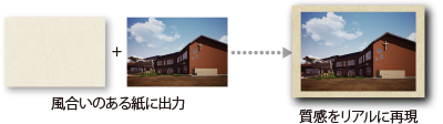 風合いのある紙に出力して、木の温もりを再現したり質感までリアルに具現化