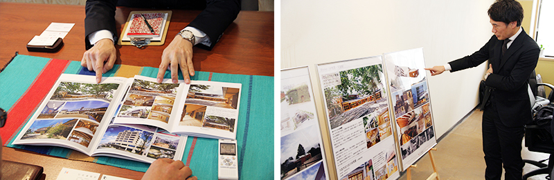 CGパースや図面、施工事例など、リアルな表現がクライアントのイメージを喚起