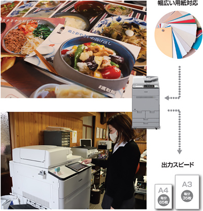 「しょうゆソフトクリーム」をはじめ、様々な商品を展開する同社では、さらなる商品PRのため従来使用していた複合機の入れ替えでimagePRESS C165を導入しました。