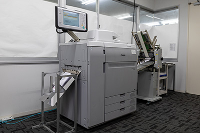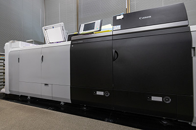 キヤノンのオンデマンド機を主軸に、裁断機、加工機などの周辺機器を拡充。お客さまからのさまざまな要望に応えられる環境整備を続けてきたからこそ事業を成長させることができました。