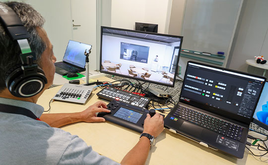 現在、キヤノンMJグループでは、新製品のハイブリッド発表会、オンライン決算説明会、人材採用におけるオンライン会社説明会やインターンシップイベント、著名ゲストに登壇していただく労働組合の開催するセミナーなど、社内の多彩な催しや行事の会場としてWITHを活用しています。定例ではない新しく企画したイベントも頻繁に行っており、なかには実施日の直前まで式次第が決まらないケースもあります。そんな時でもリモートカメラなら、セッティングが簡単でフレキシブルに準備できるのでとても重宝しています。特にメリットに感じているのが、プロのカメラクルーを外注することなく、社内の少人数でバリエーションに富んだ映像配信を実現できている点です。高いピント精度を求められる4K撮影をアシストするオートフォーカス機能でキヤノンクオリティの映像が担保できる安心感があり、ホワイトバランスや露出の設定、ズームやパン・チルト設定がコントローラーで調整・操作でき、素人でも業務用カメラに匹敵する機能を自在に使いこなせています。