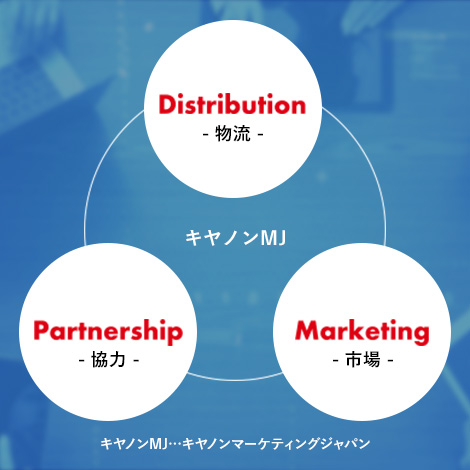 主なキヤノンMJの販売店とのEDIシステムに対応し、全国5拠点のキヤノンMJ物流倉庫(北海道~九州)から商品をお届けすることが可能です。