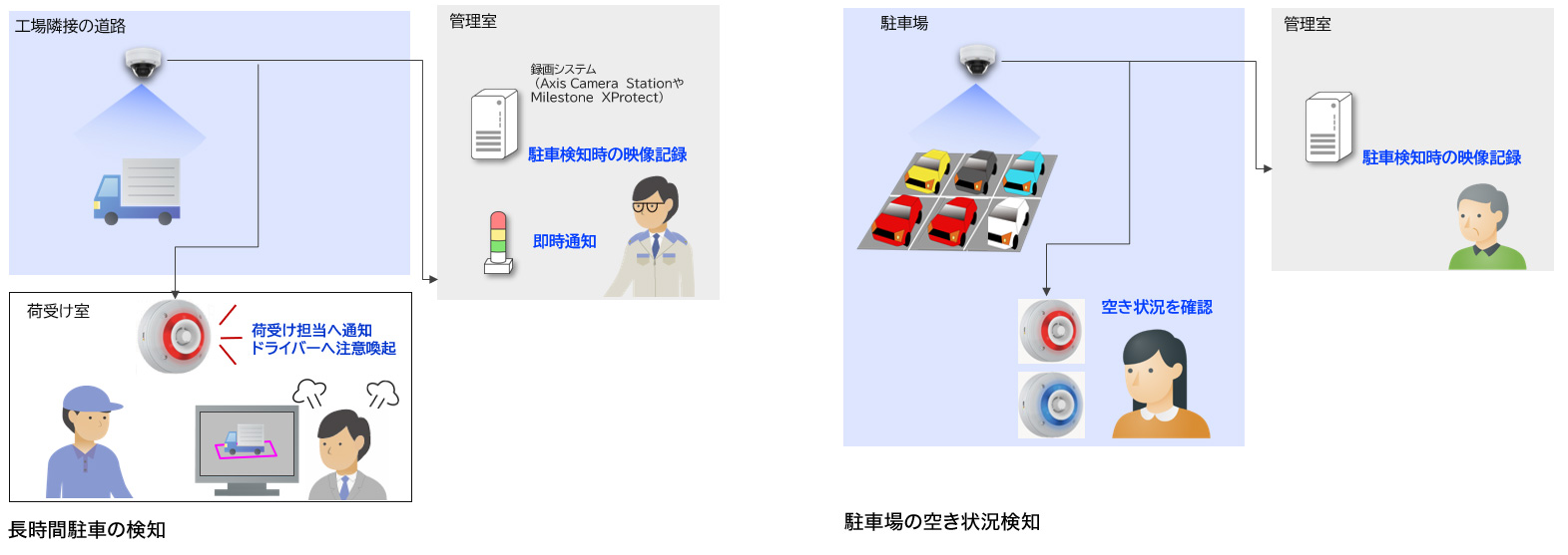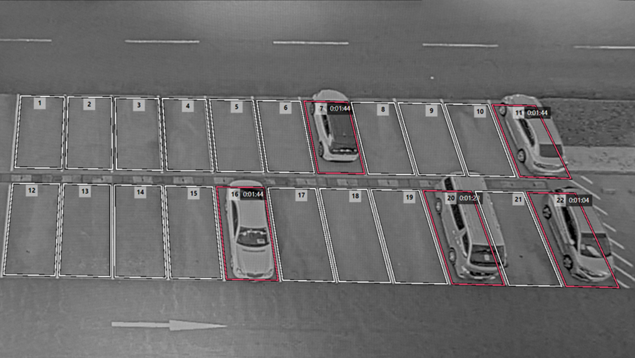 ② 駐車検知を行うと警告の発報が可能で、空き状況や長時間駐車の素早い通知を支援
