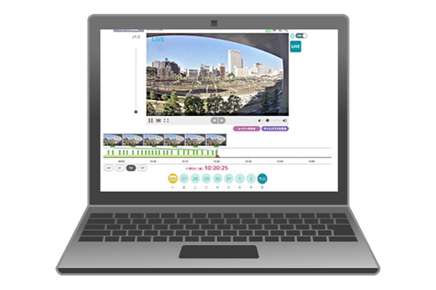 ネットワークカメラをインターネットに繋ぐだけで、スマホ・PCからいつでも、どこからでも映像確認できるクラウド型録画・モニタリングサービスです。