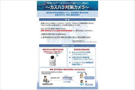弊社導入事例をもとに、クラウド録画カメラにより働きやすい職場環境をつくるためのポイントをまとめたリーフレットです。映像と音声により従業員の心理的安全性を確保する仕組みをご紹介しています。