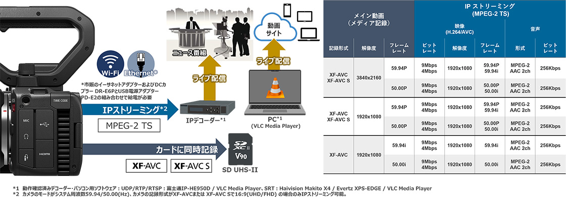 放送局などの既存の映像制作・編集フローの中で、ニュース番組や動画サイトでのライブ配信などが可能になります。