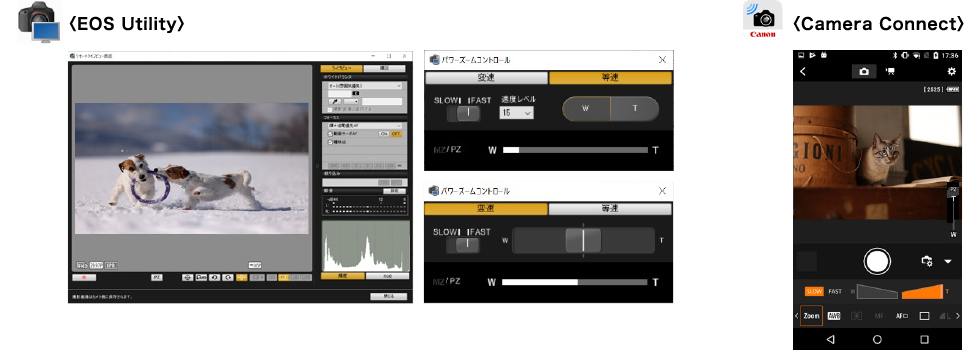 EOS R5に装着した場合、カメラ側の機能として、EOS Utility/Camera Connectを使用し、ズーム、フォーカス、アイリスを制御したリモート撮影に対応します。