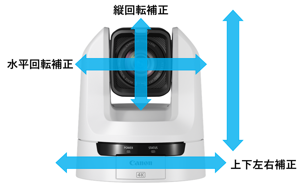 4軸方向の光学式ブレ補正を搭載。縦回転補正と水平回転補正(2軸)、そして上下左右補正(2軸)が可能です。高い防振性能により、安定感のあるPTZ操作が可能になります。