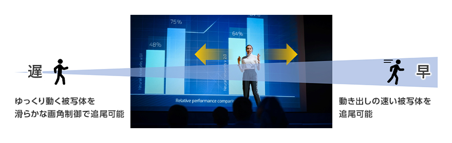 緩やかな画角制御を実現により、スムーズに追尾することが可能です。