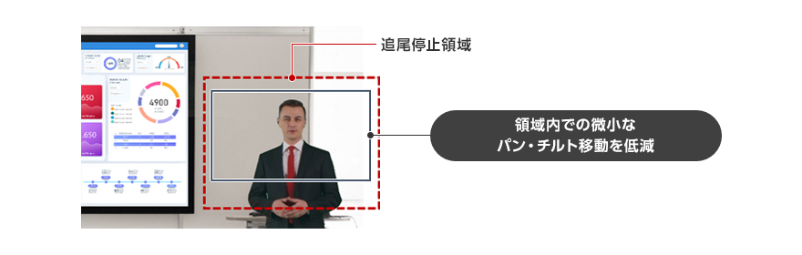 - 追尾停止領域の幅を設定することで、パン・チルト制御位置の設定が可能