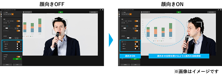 2024年7月以降に順次公開するファームウエアアップデートにより、自動追尾アプリケーションの基本機能をカメラに内蔵。