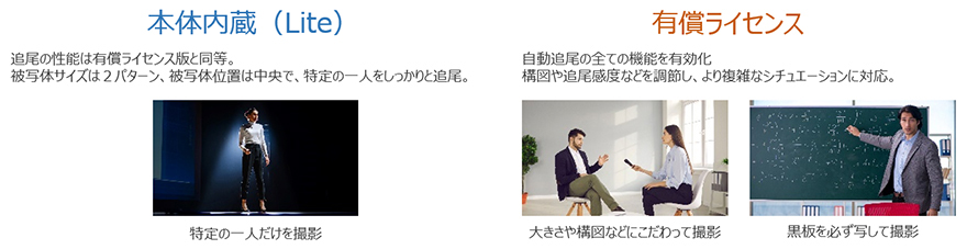 ライセンスの購入やアクティベーションを必要とせず、カメラを購入してすぐに自動追尾機能を使用できるようになりました。