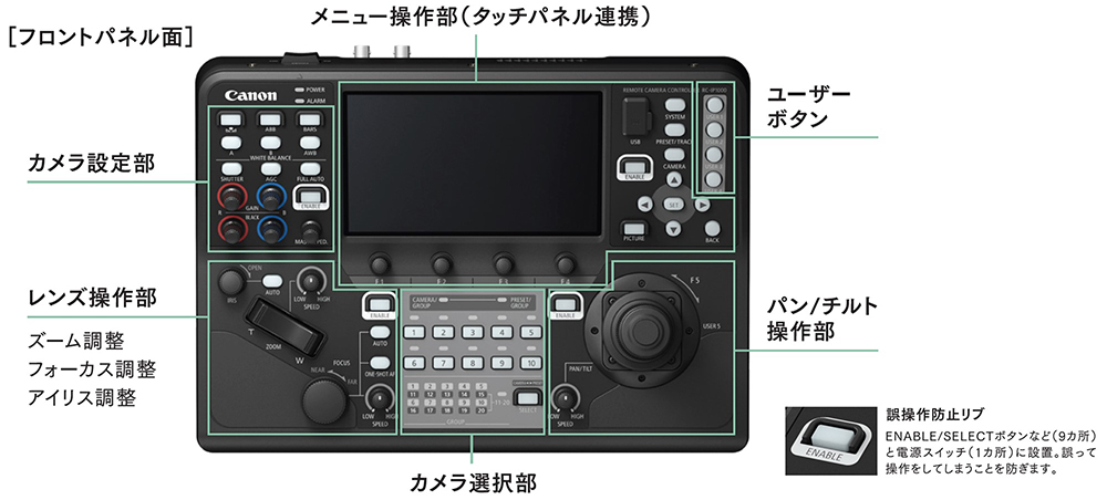 映像表示・カメラ操作が可能なタッチパネルを搭載