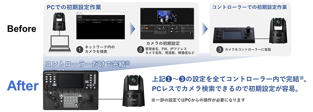 コントローラーからカメラ検索が可能なため、LANで接続するだけでカメラを自動で検索し登録することができます。