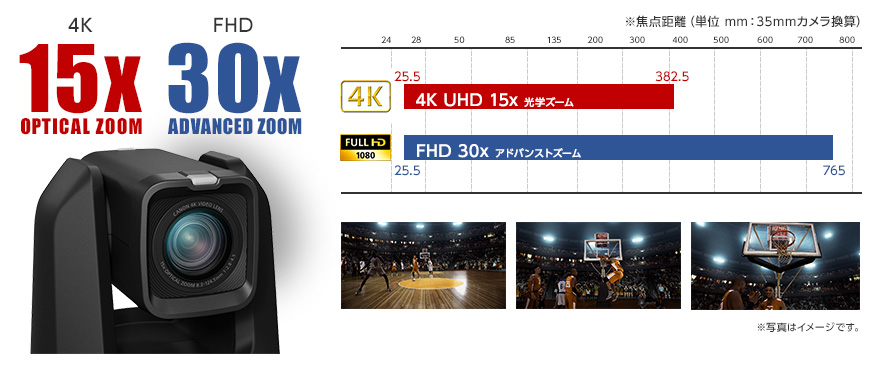 広角25.5mmスタートの4K・光学15xズームとFHD 30xアドバンストズーム