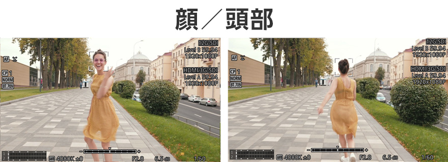 頭部検知では、後ろ姿にも対応し、スポーツなど被写体の動作が激しい撮影でも、粘り強くピントを追従します。