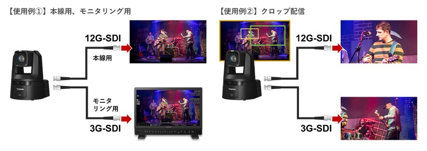 SDI出力を2系統搭載(12G-SDI/3G-SDI)