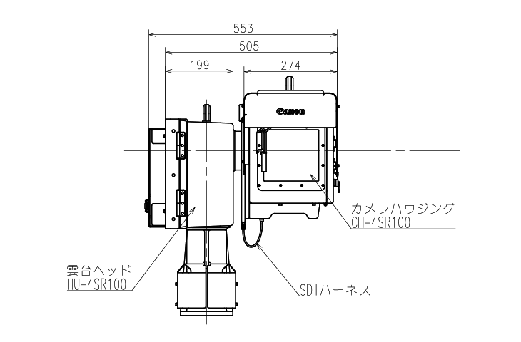 | 質量 | ヘッド:約28kg (防水ブーツ、防水ホース除く) ハウジング:約14kg (レンズ・カメラ除く、望遠用レンズサポート含む) |