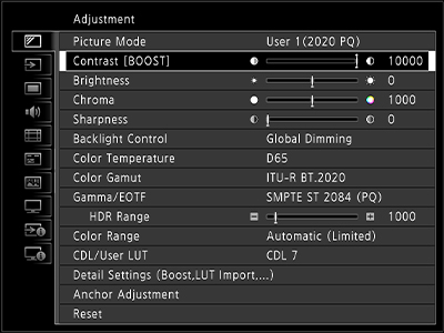 17型のDP-V1710・DP-V1711を対象に、表示最大輝度を1000cd/m²※、ローカルディミング動作時の全白/ピーク輝度を600cd/m²※に輝度向上する有償アップグレードサービスを提供いたします。
