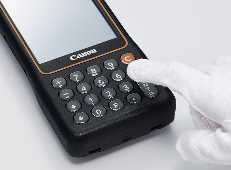 数値入力の操作性にこだわったテンキーボードはキーピッチを広くし、大きなボタン形状を採用することで、押しやすさを実現。冬の寒い時期に手袋をしたままでの操作も可能です。また、見やすく読みやすいユニバーサルフォントの採用で押し間違いを防止します。