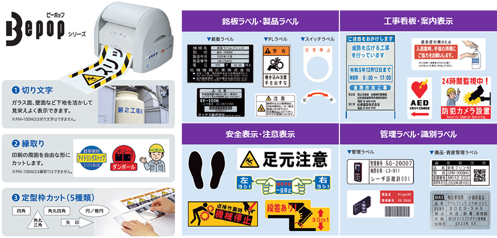 弊社では、現場の安全衛生の促進活動に、前段でご紹介した表示作成機『Bepop』をおすすめしております。