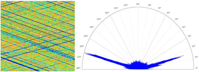 エリア内の粗さ解析とクロスハッチ角度の解析例