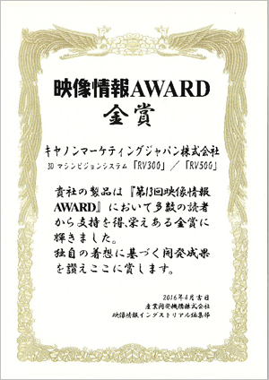 第13回映像情報AWARD「金賞」受賞