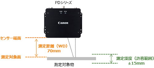 センサー端面※~測定対象面の距離を70mm(±15mm)離して設置してください。