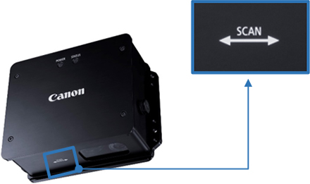 装置の底面のSCAN方向を確認し、測定対象物の移動方向と一致するように設置してください。