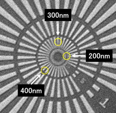 ジーメンススター空間分解能チャートを用いて、空間分解能300nmを示します。