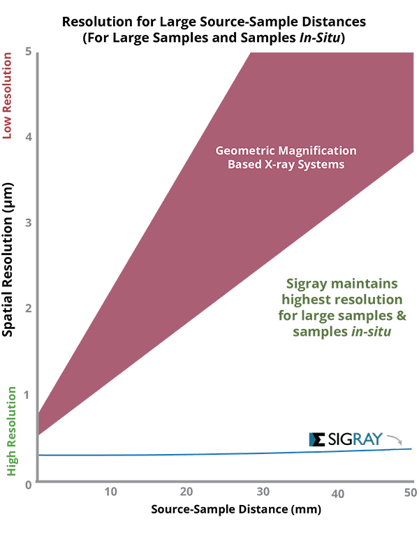 Sigray社が特許出願中である独自の装置機構により、最高空間分解能300nmを実現。