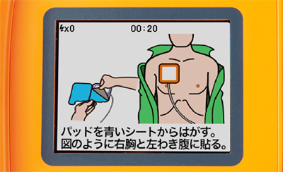 AED-3150の使用方法はとっても簡単。わずか3ステップ操作で、確実で迅速な操作が可能です。