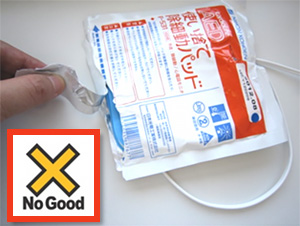 電極パッドを封入している白い袋は開封しないでください。開封すると乾燥し使用できなくなります。