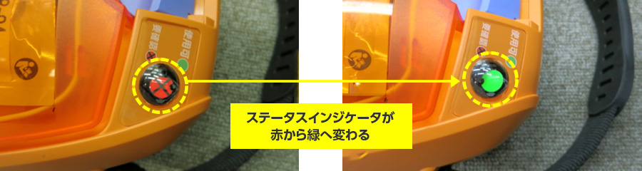 バッテリー残量の目安は、AED本体の診断パネルに5段階で表示されます。