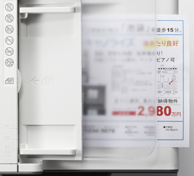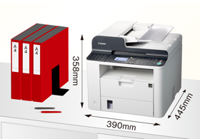 横幅わずか390mmのコンパクトボディに機能を凝縮。書類などと並べてもすっきりと収納でき、省スペース化に貢献します。