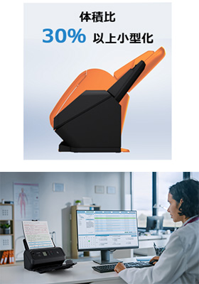 従来機DR-C240/DR-C230と比べて体積を30%以上小型化しました。