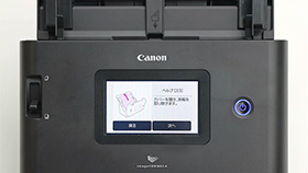 スキャナーの本体前面から、ほぼすべての操作を行える設計です。消耗品の交換や万一の紙づまり処理の際も、大きな開口部から簡単に作業できます。