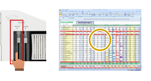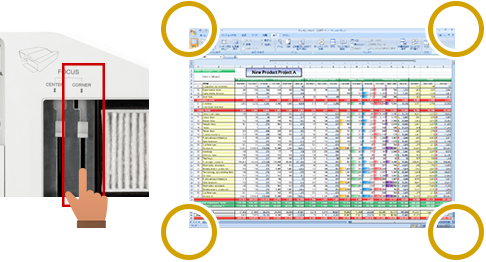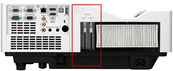 中心部と周辺部のピントを個別に調整することができるため、ピントが甘くなりがちな超短焦点プロジェクターにおいても、映像全域でピントの合ったきれいな映像を実現しています。