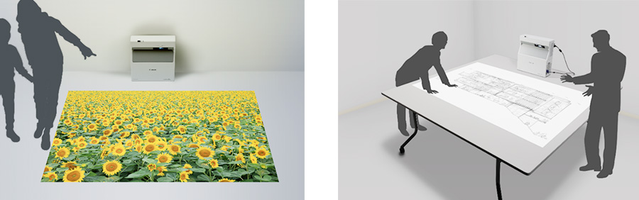 また、床やテーブルに縦置きすることで床/テーブルへの映像投写も可能。