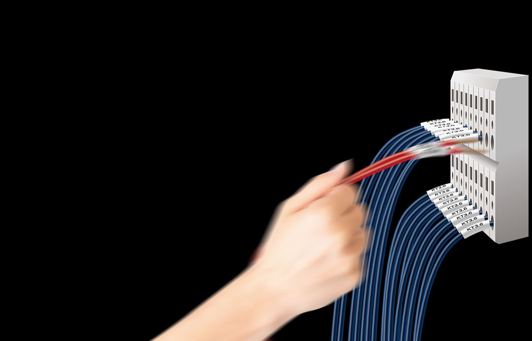 作業効率が求められる現場。まとめてケーブルを抜き差しする時の煩わしさを一段と効率化できるように。内側にヒダが付いているキープチューブは、まとめて抜いてもマークチューブが落ちにくい構造なので、作業のスピードアップを促進します。