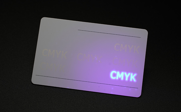 | 蛍光隠しインキ | ブラックライトを当てると文字が浮かび上がる、コピーでの再現不可。 |