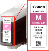 切り替えずに、従来のマゼンタインク「BJI-P411M」をこれまで通りご使用いただくことも可能です。