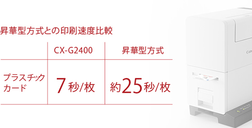 キヤノンのカードプリンターなら、1枚目の印刷が7秒以内で完了するので、カード発行の会員様が並んでも、お待たせせずに印刷ができます。