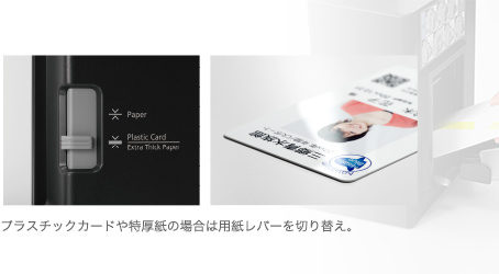 プラスチック、紙、シールの学生証を、たった1台で作成