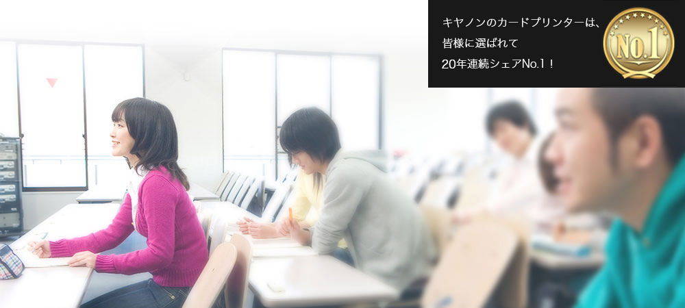 キヤノンのカードプリンターなら、顔写真入りのプラスチックカードを1分50枚(カラー片面)で高速印刷。毎年春の学生証の大量発行の負担が軽減できます。